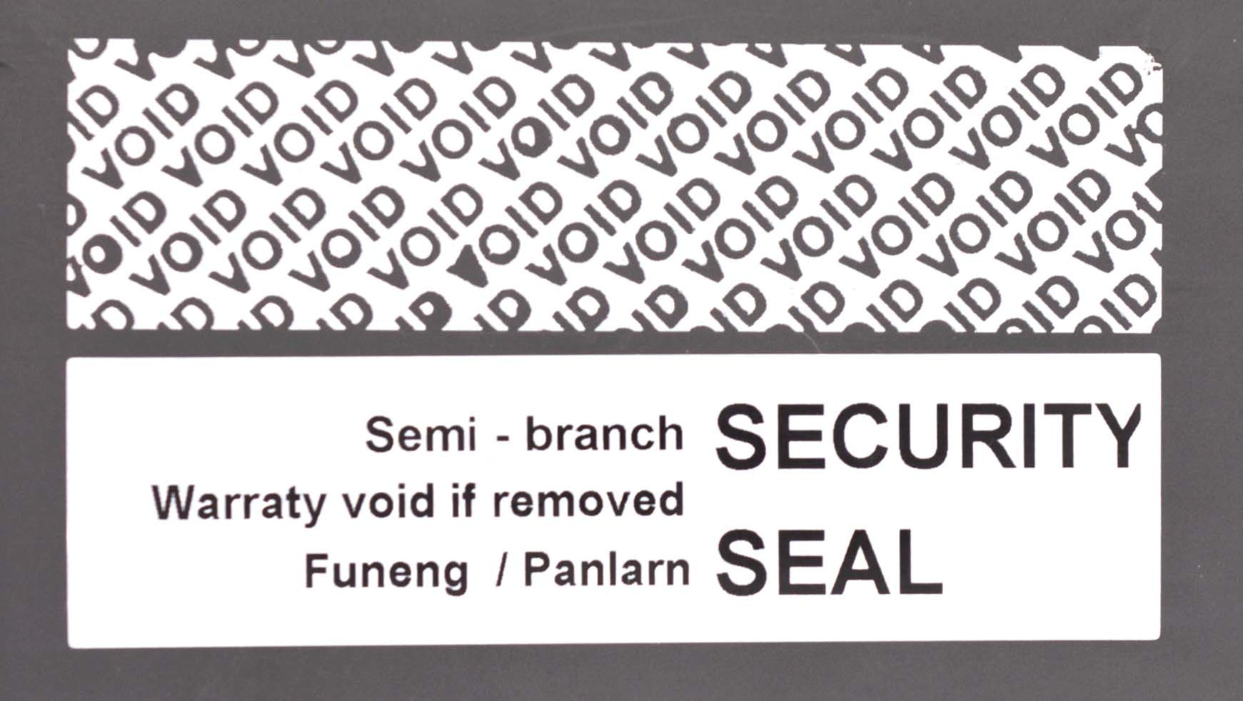 Ένα είδος προστατευόμενου από παραβίαση μηνύματος εκτύπωσης σχηματίστηκε στο πίσω μέρος του υλικού της κολλημένης ετικέτας μέσω μιας ειδικής διαδικασίας (συνήθως περιελάμβανε μηνύματα "VOID", "VOIDOPEN", "REVEALED",ή άλλες προεπιλεγμένες λέξεις που έχουν συνταχθεί από τους πελάτες μας).Δεν θα μπορέσεις να δεις την κρυμμένη λέξη "ΑΠΕΝ ΒΟΙΟΥΔ" μέχρι να ανοίξει.Αφού ανοίξει η μάζα σελίδας, ανοίγει τη λέξη "OPEN FLUID" καθώς και το χρησιμοποιημένο αντικείμενο και η ετικέτα δεν μπορεί να εισαχθεί ξανά.Μόνο ένα μέρος του στρώματος κατά της παραχάραξης μεταφέρεται από την ετικέτα στα χρησιμοποιούμενα αντικείμενα.
